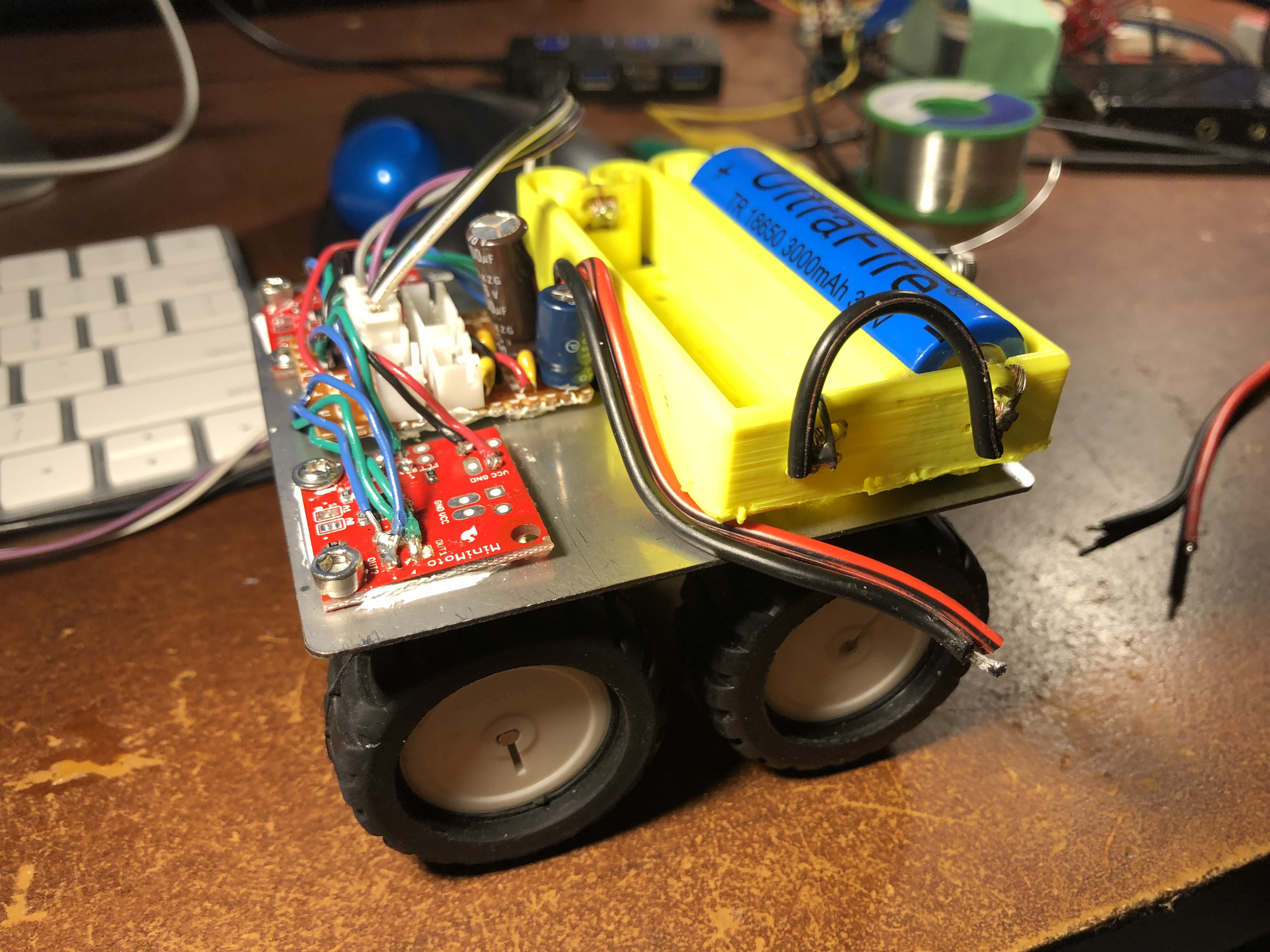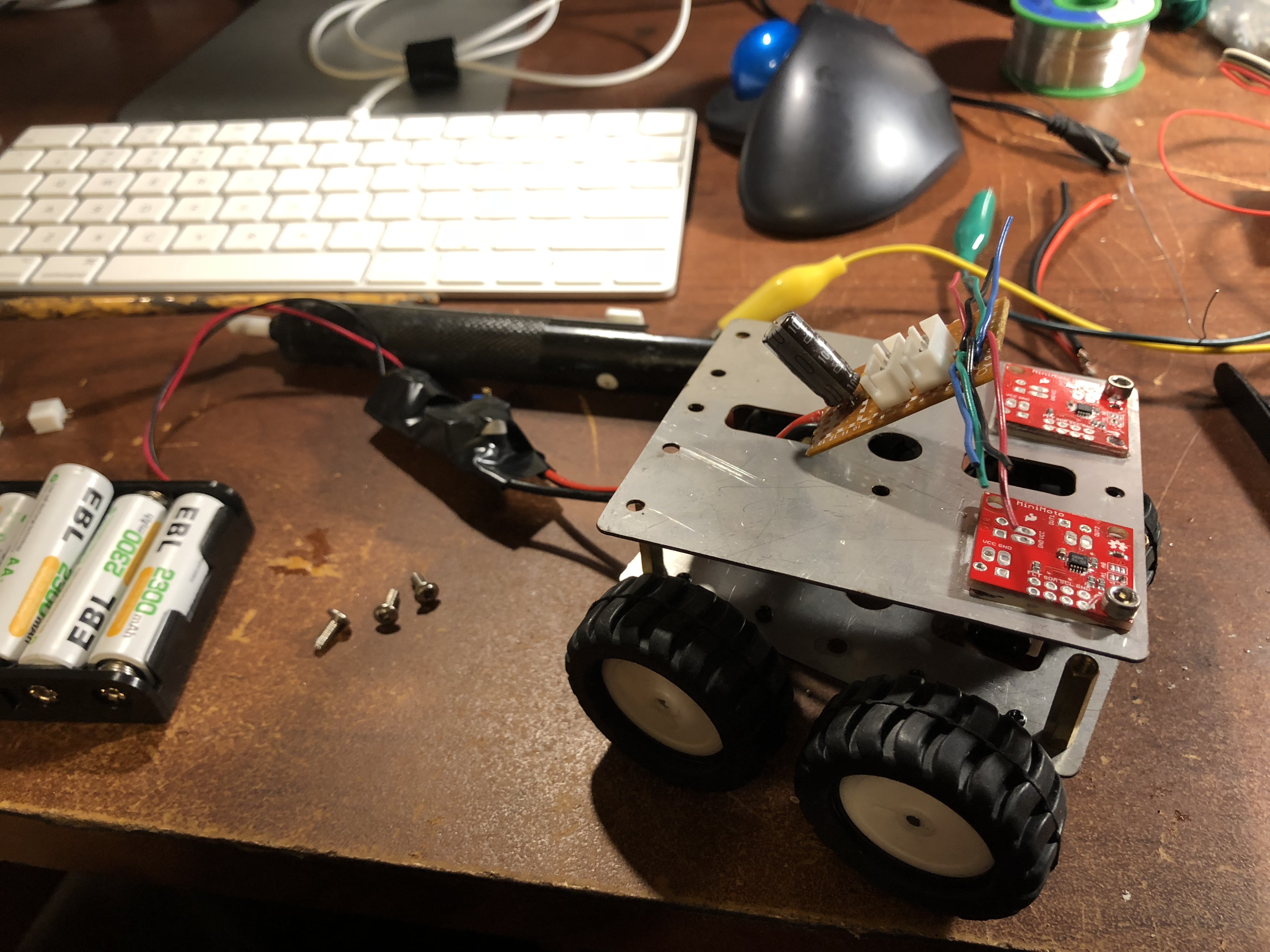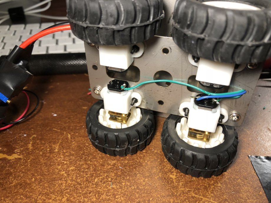 It was time to wire up the chassis motors and create a test of the system. The wire used was some eBay single core aluminum wire (the cheap stuff). Wiring was pretty straightforward.