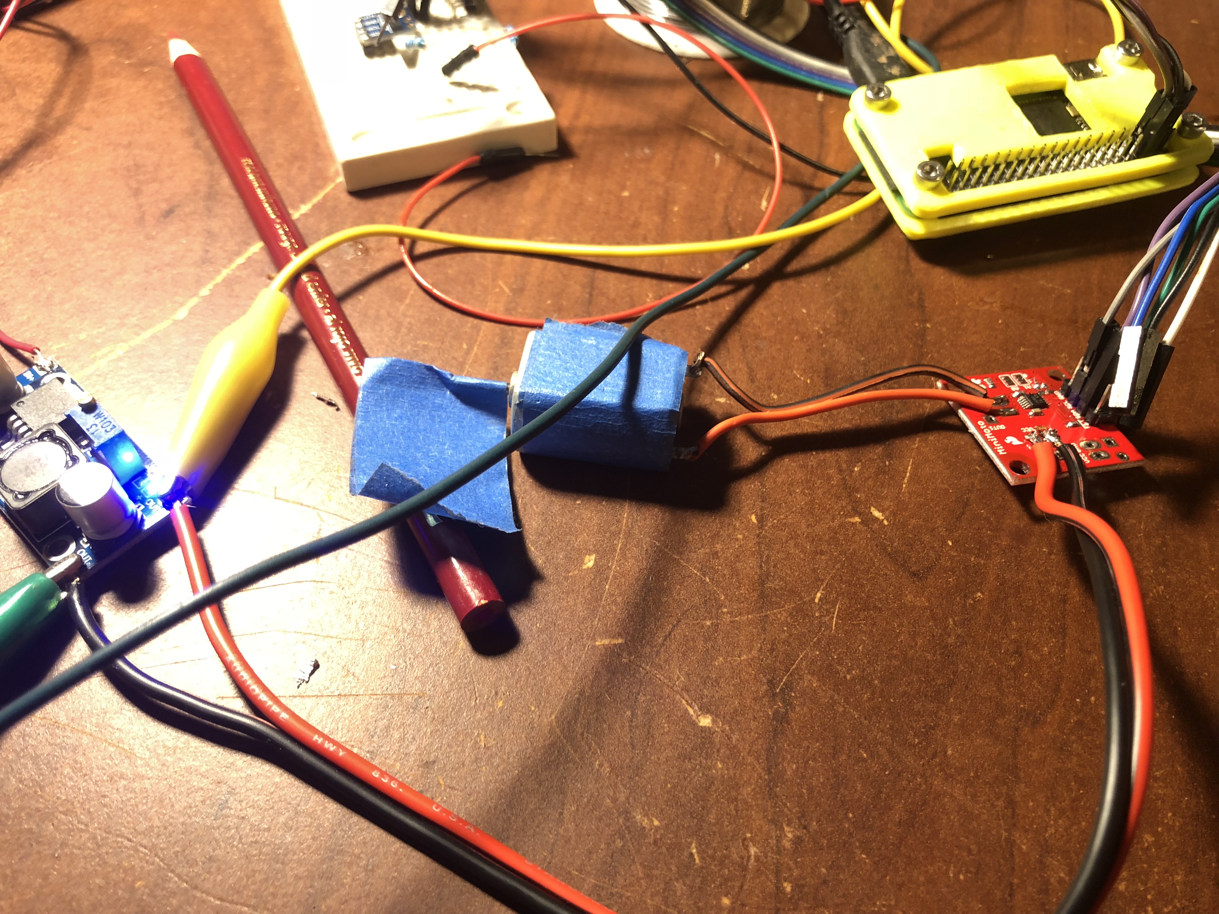 The last bit I had to figure out was the the Raspberry Pi's power. I attempted to use a single Li-Ion battery and a boost regulator to power it, but the regulator's I bought were DOA.