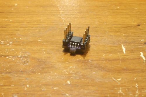 I've been non-traditional microcontroller curious for a bit. Then, I had to put a Digi-Key order together for some real cheap stupid stuff (some SOT-23 N-Channels for the LiPo charger circuit) and I thought, "What the hell, let's order some ATTiny 85s." Being cheap like I am, I ordered SMD: