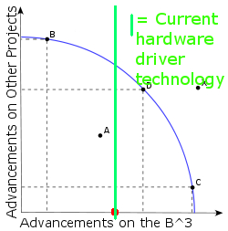 In essence, this graph shows that I cannot reach my desired productive efficiency (getting the B^3 to do the tricks I want it). Really, I'd be happy at point C (even though point D is probably better for me and my family). The problem is technology limitations are restricting me from getting to point C on the curve. And it's bugging the hell out of me. At first, I thought this was completely due to my ineptitude (which is partially true), but there is another barrier, a seemingly hidden one.