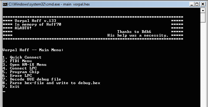 printf("Vorpal Hoff -- Main Menu: \n\n");