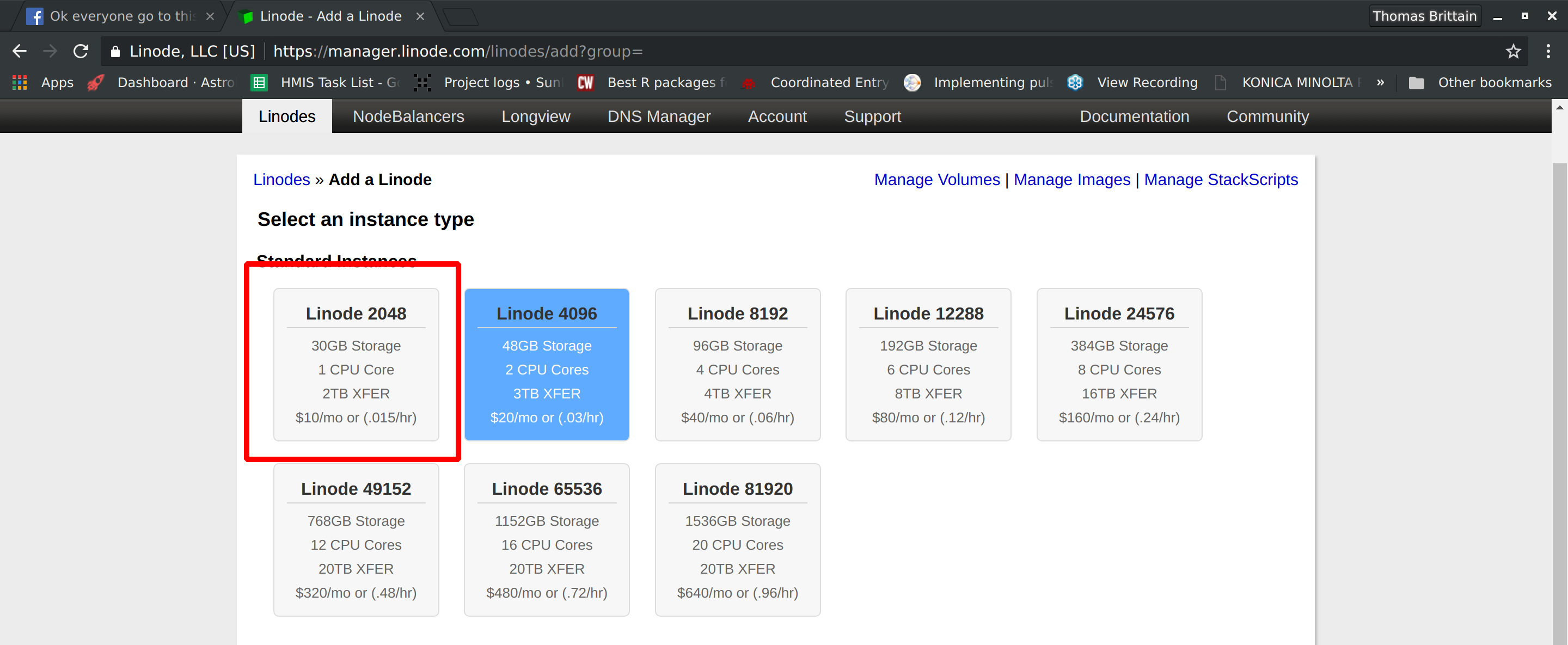 . Here select the smallest sized Linode as possible. When I started, the small servers were $5 a month--but it looks like they've gone up. My guess is, you can find them on sale occasionally.