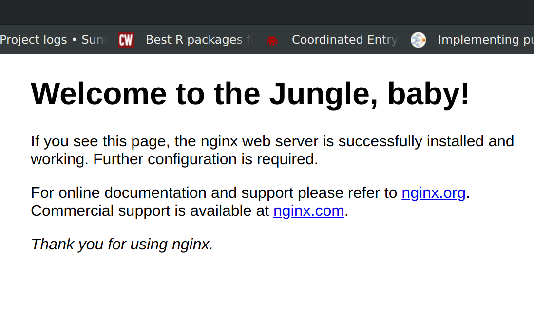 Friggin awesome! Let's move on to setting up Nginx, so you can serve your own website.