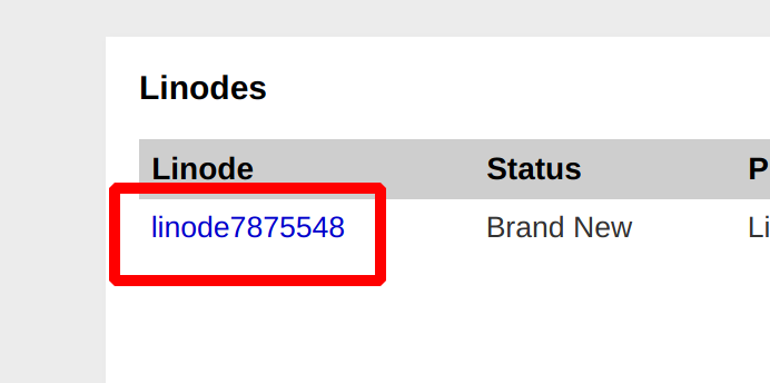 Let's get Linux setup on your machine. Click on the name of your Linode.