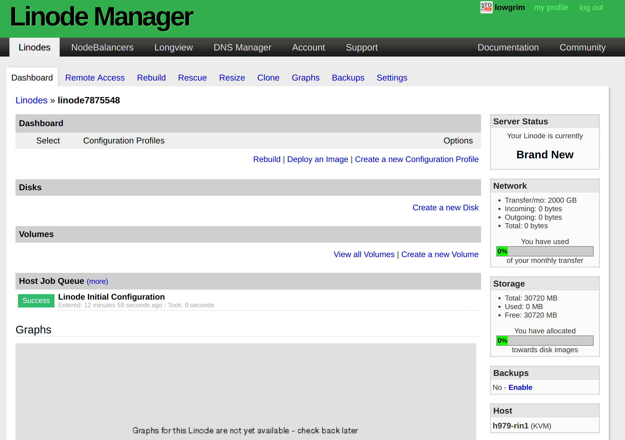 Once you've added your Linode you will be re-directed to your Linodes dashboard