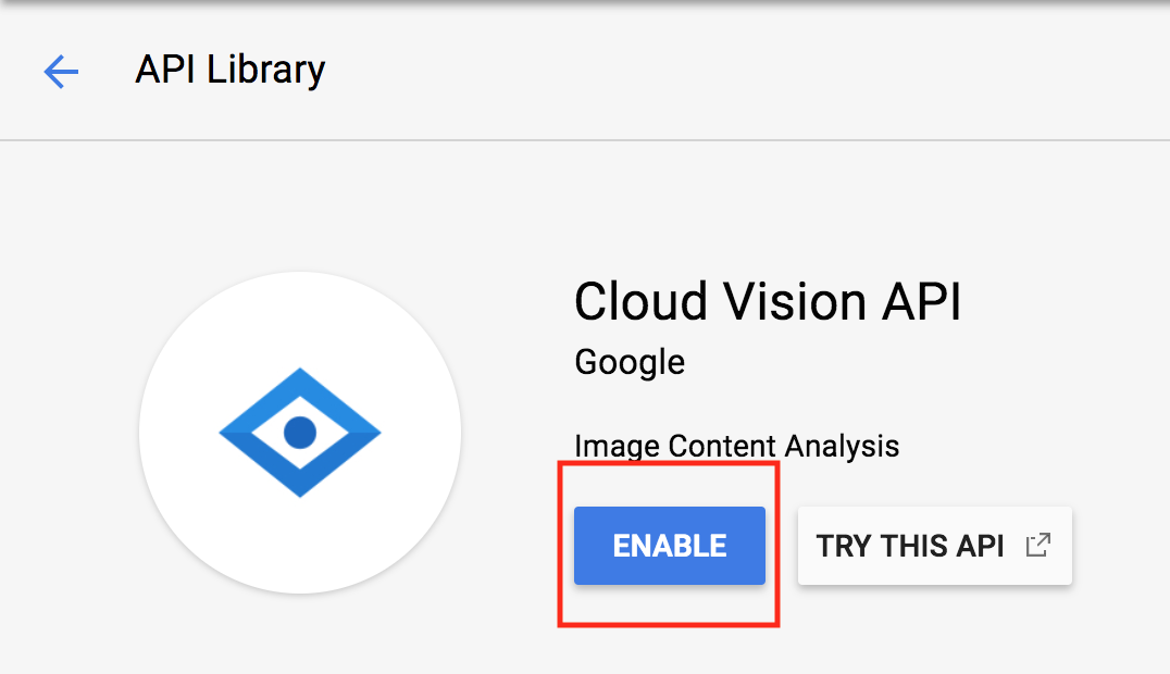 After setting up billing information we still need to enable the Cloud Vision API. This is a security feature, essentially, all Google APIs are disabled by default so if someone accidentally gets access they don't unleash hell everywhere.