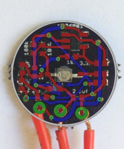 - Flip the sensor and lock it to your surface with tacky-putty to solder the LED, passives, and op-amp. I won't detail this, since my video shows the entire process.