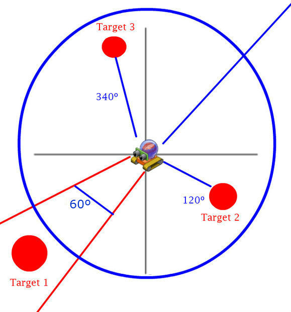 - The PC calculates the angle between the bot and the target.
