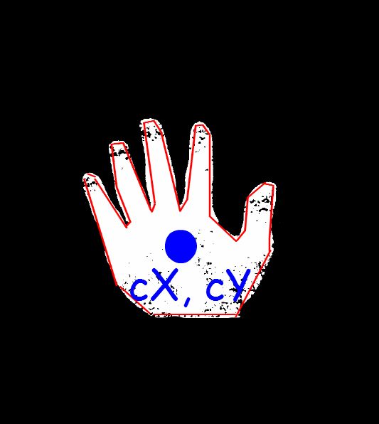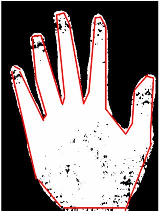 103: Finds the contours of the white area in the resulting image.