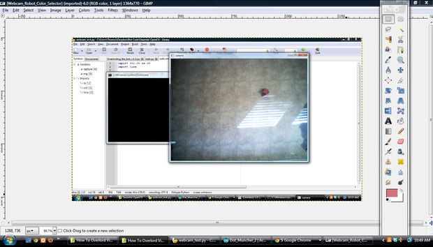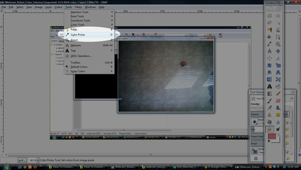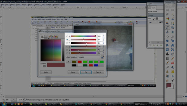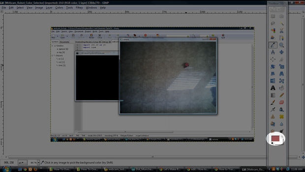 The color format we are using is HSV, which stands for hue, saturation, value . Later, I'll probably write code to select the robot within our actual program, but for now I use Gimp and the following method: