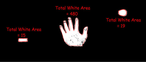 107-112: OpenCV then counts how many pixels are in each contour it finds in the webcam image. It assumes whichever has the most white area (aka, "mass") is our object.