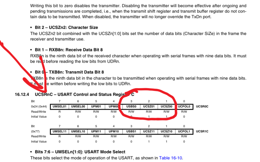 UCSR0C = (1<<USBS0)|(1<<UCSZ00)|(1<<UCSZ01); // 8bit data format