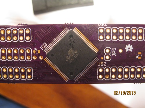 I went to bed. Got up. Went to work. Helped some homeless people. Tried not to think about my huge blunder. But by the time I got home I knew what I had to do. Originally, I had gotten two sampled Atmega 2560-16UA chips from Atmel. I needed to make the second board. This go, the board took me maybe 25 minutes. But I didn't run over and try to brick it. I waited. I plugged it in and swore to myself not to attempt programing it until I had become an expert on fuses, lockbits, and whatever silly things Atmel had put into such an awesome little chip.