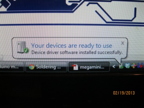 I ran to the computer and plugged my board in. I was thrilled to hear a "Doo-dooh!" USB connection sound and then this pop on my screen.