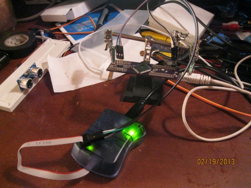 . The designer hadn't put their values in schematic. So, I felt for sure that was what it was. Then I looked down to my helping hand clipped to the board--I thought, "Huh. I wonder if something is shorting out on the unhelping hand." Moved the hand. Hit "Read" again. Guess what? If you buy a metal Helping Hands, make sure it's not shorting you board. My board signature was reading. Now, I just had to figure out how to program it. I ran all over Arduino.cc, AVRfreaks, and Lady Ada's forums looking for how to program an Atmega 2560. I found a few posts, but it seemed everyone was more interested in programming Atmega 328 DIP packages. Pfft.