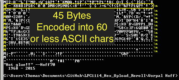 - hex_data_array is a pointer to an uint8_t array containing the hexadecimal values to be encoded (to learn where I get my hexadecimal data, checkout another one of this inglorious post: Intel HEX File to Array ).